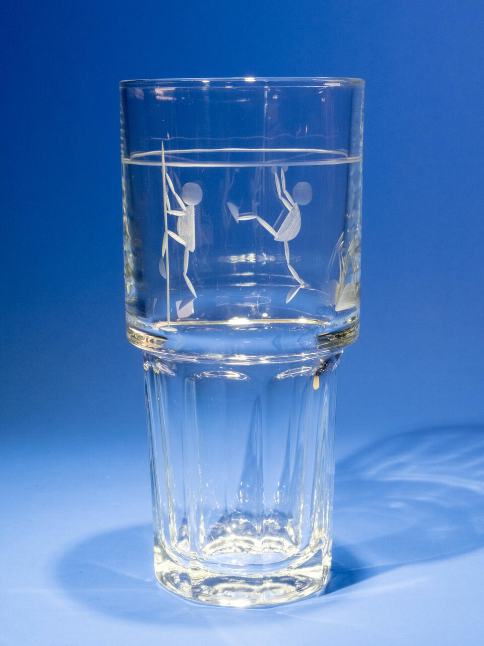 Meine Seiltänzer sind die im kubistischen Stil markant ins Glas gravierte Figuren. Sie machen es nicht nur unverwechselbar, sondern sorgen für ein richtig prickelndes Tasterlebnis.