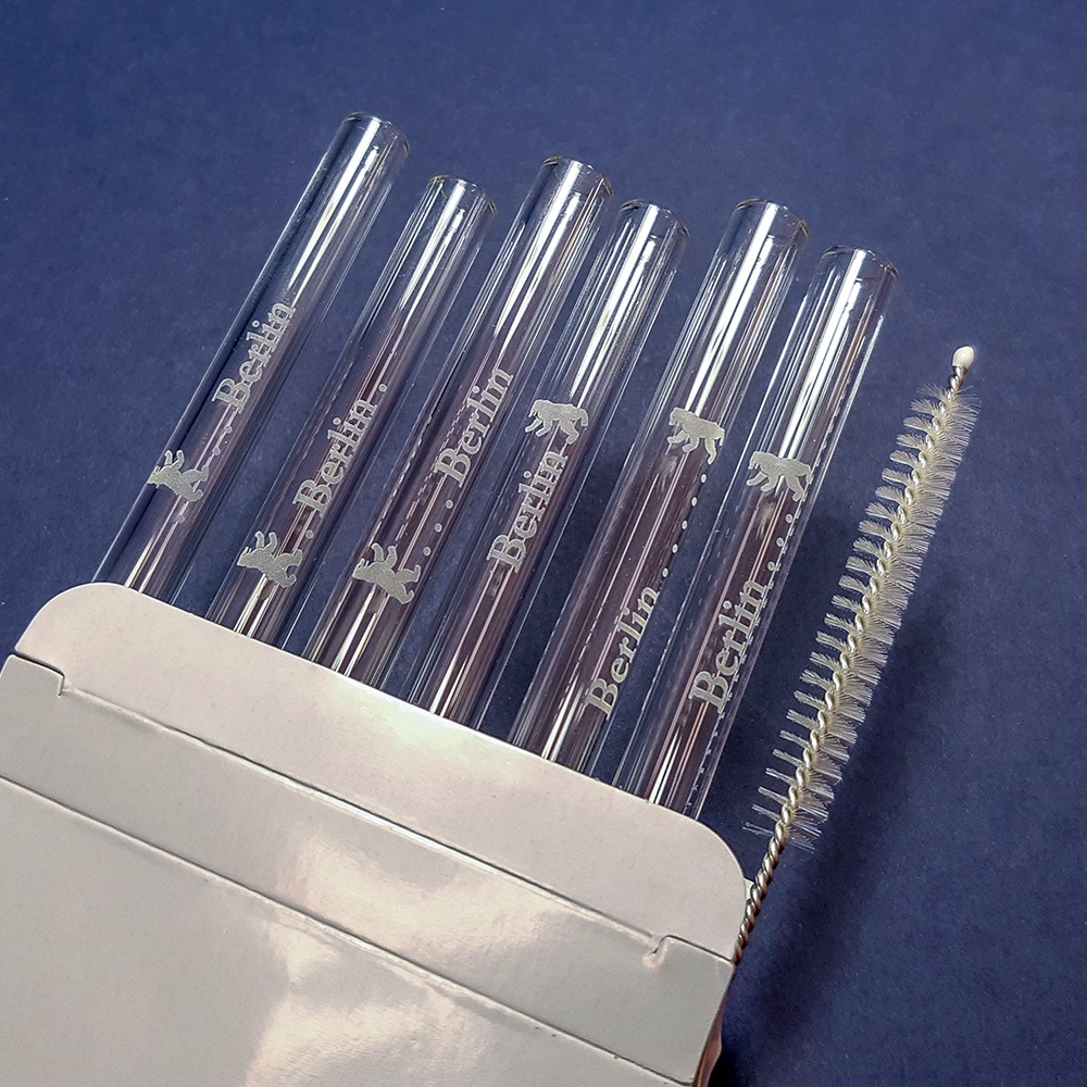 6 Strohhalme aus Glas mit Berliner-Bär-Gravur