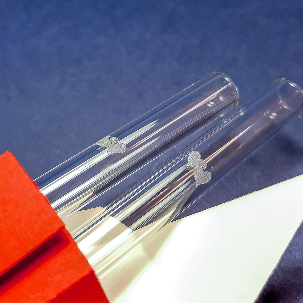 - 2 x 200er-Glastrinkhalm, gerade, Ø 10 x 1,5 mm dick mit Herzengravur