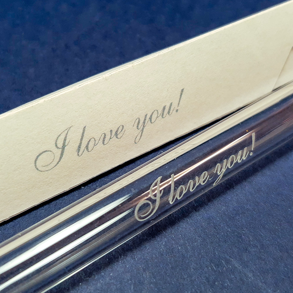 Glastrinkhalm mit "I love you"-Gravur